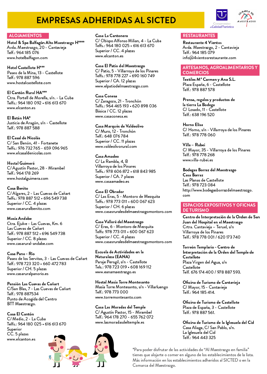 Muy sencillo, para poder participar tienes que alojarte o comer en alguno de los establecimientos adheridos al SICTED. Que son todo este listado.