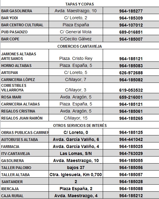 A continuación les dejamos las direcciones y teléfonos de contacto de los servicios de Cantavieja, para conocer más sobre ellos pinche aquí.