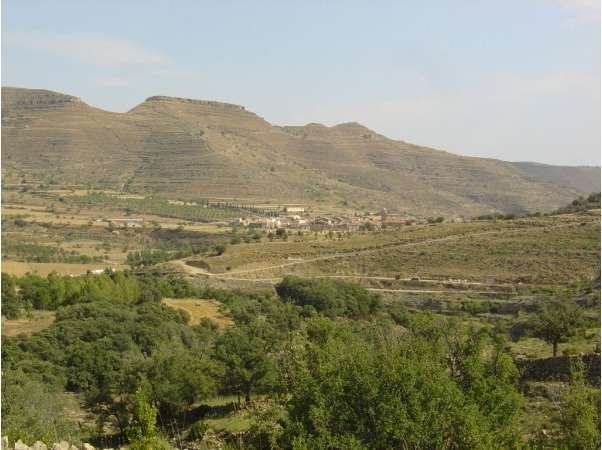 Continúa a la izquierda hasta un cruce con un mojón de piedra seca (Km 24,5): es la derivación que en 6,5 km lleva hasta Mirambel. Seguimos por la pista asfaltada en dirección Cantavieja hasta alcanzar la carretera A-226 (Km 30) para ascender en fuerte pendiente hasta la localidad (Km 34,2).