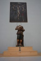 San Lamberto, patrón de los quintos de Cantavieja, y patrón de los labradores aragoneses, Santo de característica peculiar al portar en la mano su cabeza.
