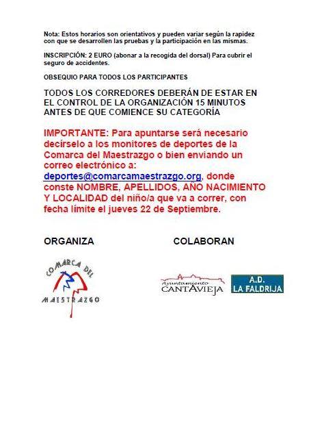 Para realizar la inscripción esta debe hacerse a través de la página web http://www.deportesmaestrazgo.es hasta el miércoles 21 de Septiembre.