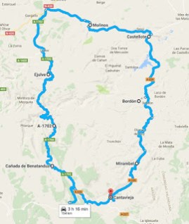 Cantavieja, Mirambel, Bordón, Castellote, Molinos, Ejulve, Villarluengo, Cañada de Benantanduz, Cantavieja.