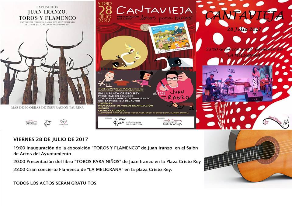 El 28 de julio a las 19.15h se inaugurará en el ayuntamiento de Cantavieja la exposición del artista y diseñador Juan Iranzo bajo el título: «Toros y flamenco», promovida por el Ayuntamiento de Cantavieja, la Peña Taurina de Cantavieja y la comarca del Maestrazgo.