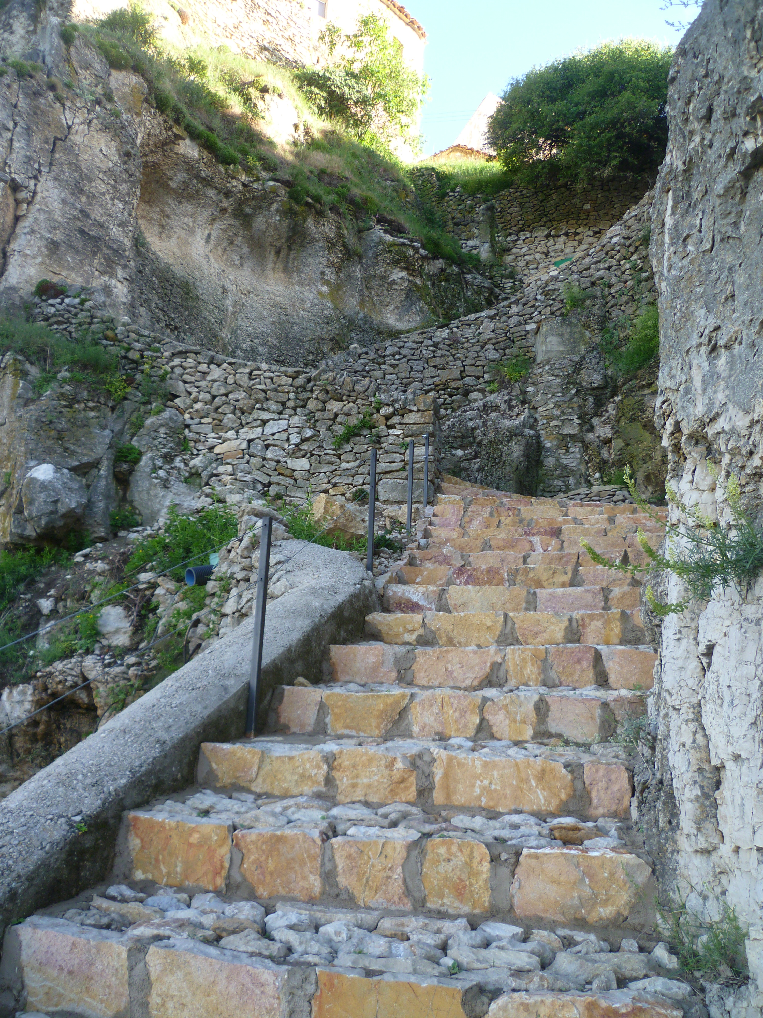 El sendero se inicia desde la plaza España dirección la Calle Loreto a la izquierda, de ahí comienza un laberinto de piedra que desciende debajo del municipio, continuando el sendero que transcurre dejando el municipio a la derecha, se llega de nuevo a otras escaleras que devuelven de nuevo al municipio, llegando así a la parte de las murallas.